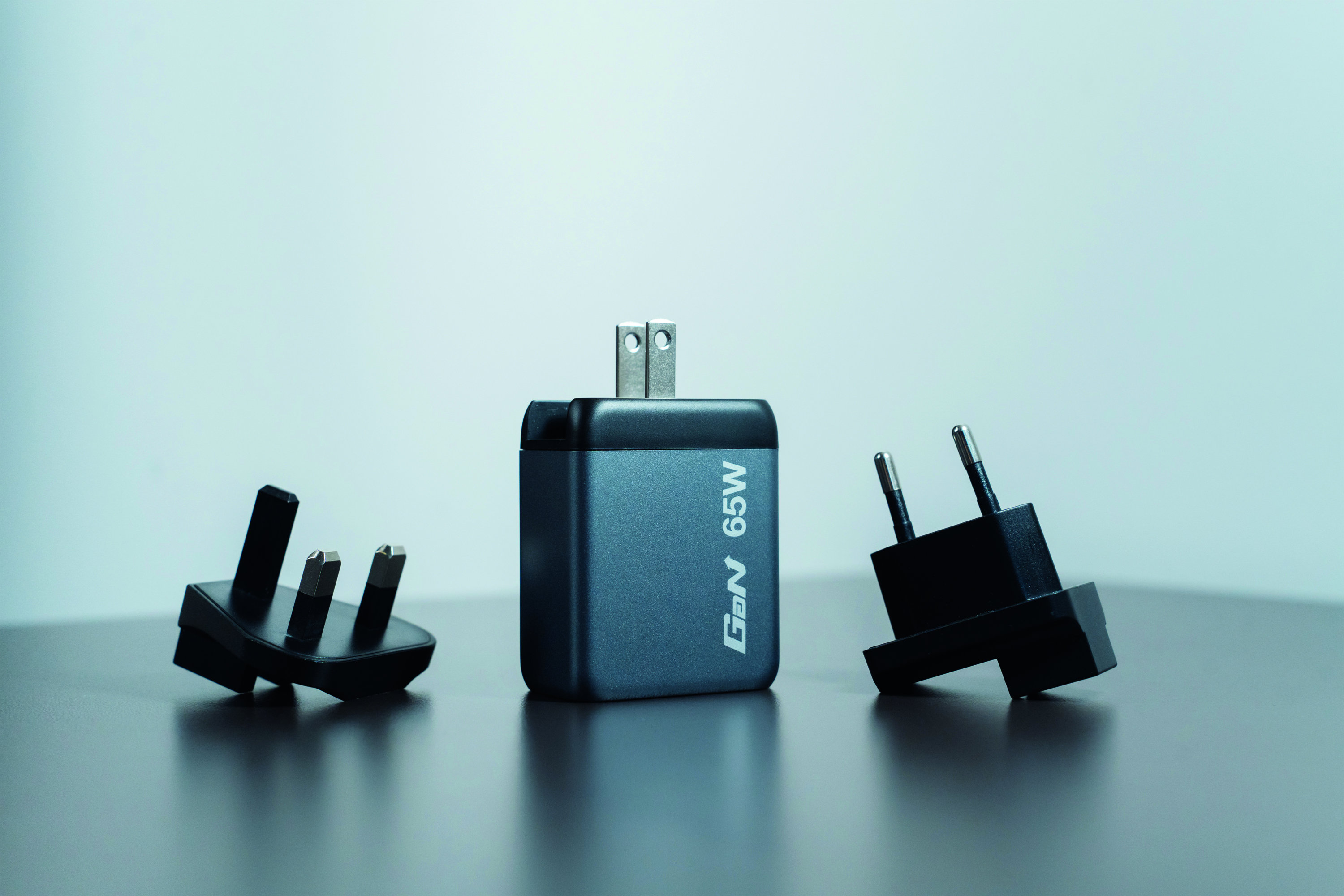 65 W 3-Port GaN Wall Charger, Black/Gray