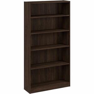 Vista Tall 5-Shelf Bookcase offers a versatile storage and display solution for the home or office. It keeps any office or work space organized and clutter-free, adding a modern touch and extra storage where it's needed. Three adjustable shelves accommodate books and decorations of various sizes. Two fixed shelves give the vertical bookcase additional strength and stability. Large bookcase's 1" thick shelves support up to 50 lb. to store larger items like binders and photo albums without sagging over time. Bookshelf comes with wall-attachment hardware for family-friendly safety and stability. Smooth side panels allow two or more of the five-tier bookshelves to nest together seamlessly. Bookshelf is made of engineered wood with laminate and metal and plastic components. It is meticulously tested to meet or exceed ANSI/BIFMA quality standards for safety and performance.