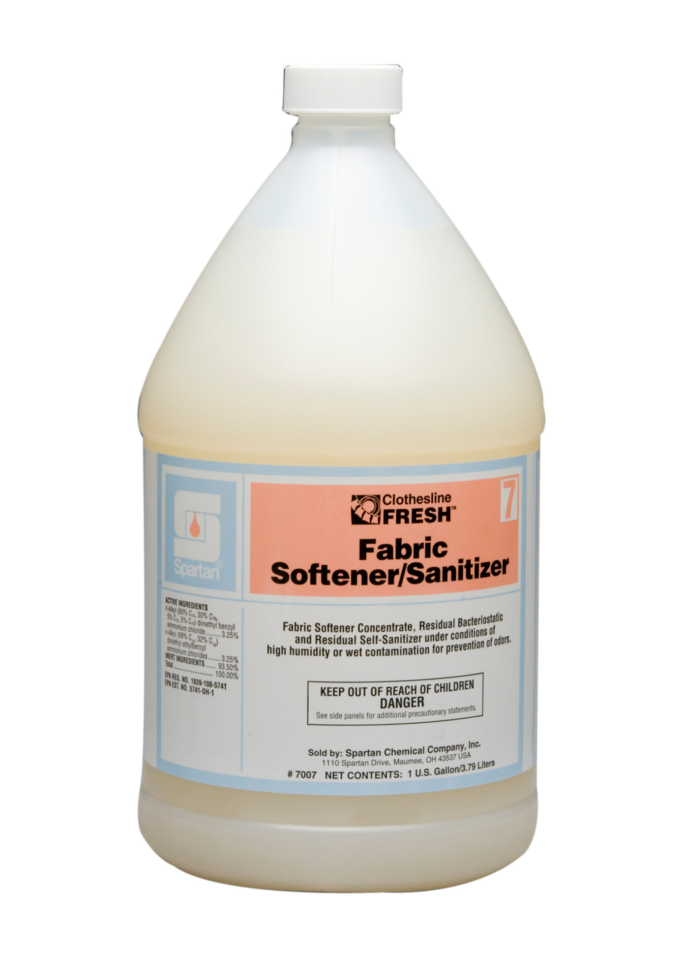 Clothesline Fresh Fabric Softener/Sanitizer is a liquid fabric softener designed to soften and eliminate static cling from laundered fabrics while sanitizing! Clothesline Fresh Fabric Softener/Sanitizer reduces the rigidity of fabrics which reduces fiber damage and can prolong fabric life as well as aid in the ironing process by reducing wrinkles.